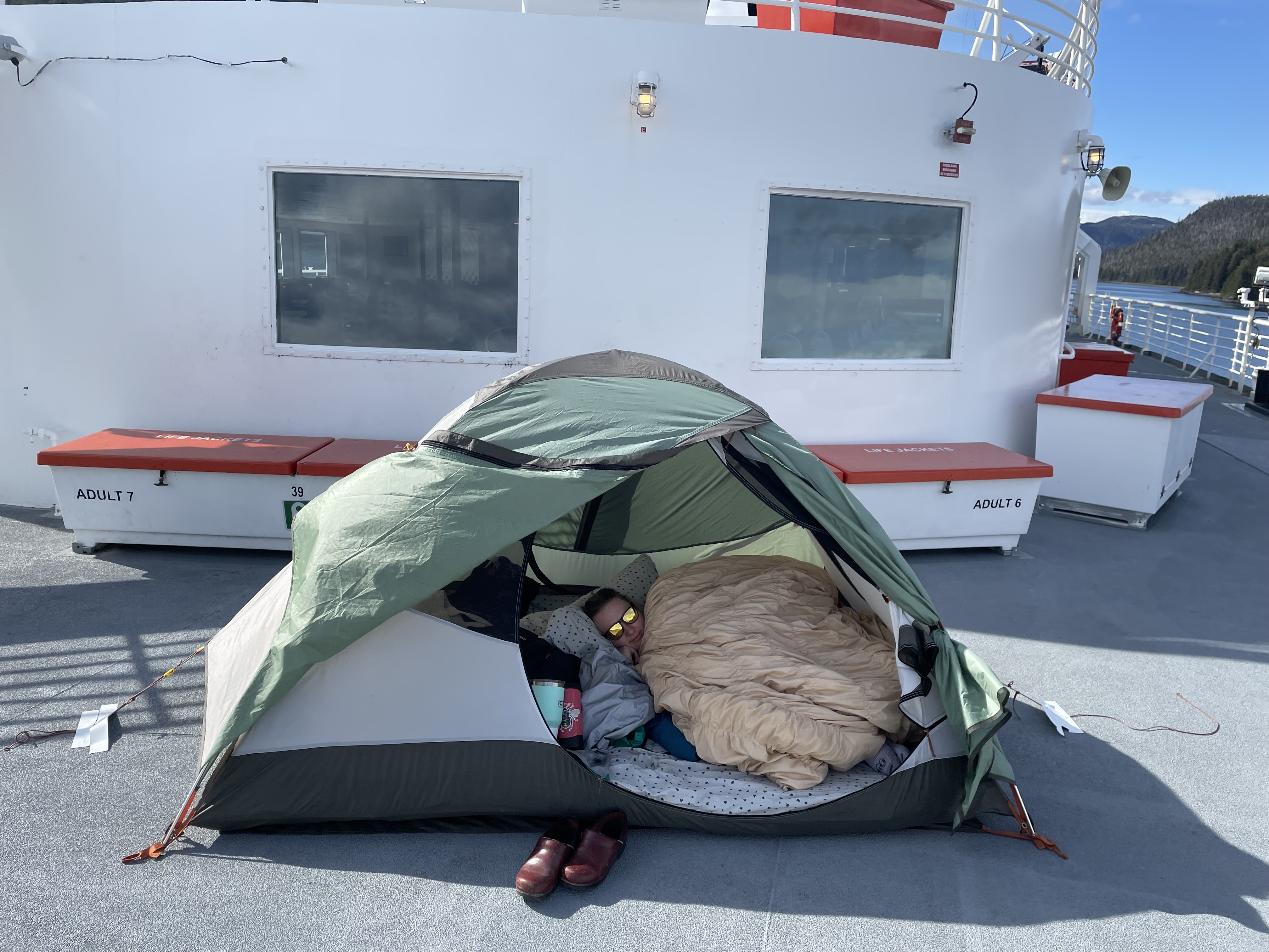 On our way back to the lower 48 we took the ferry through South East Alaska. This was fun - we put our tent on the deck of the boat, and got to enjoy a scenic cruise through the south east passage. There are a ton of super cute towns along the way, and the weather seemed much better. Next time I visit I'd like to explore this area more.